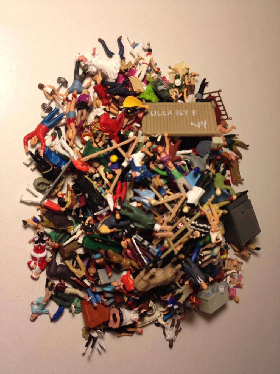 Bajo un formato especial, Espinosa trabaja con figuras en miniatura y cuestiona el sentido de