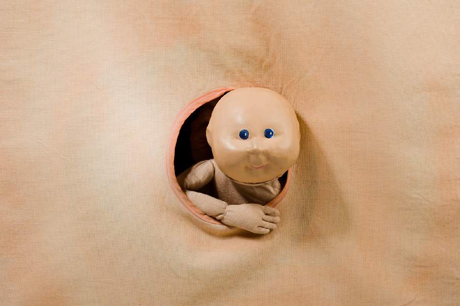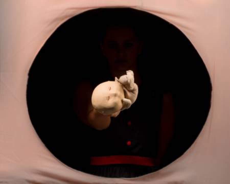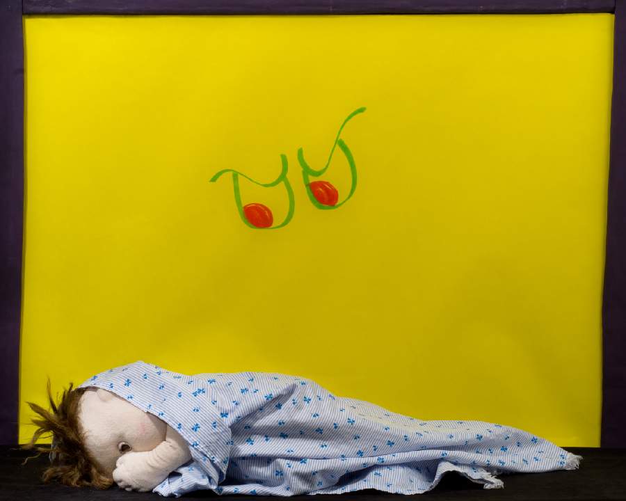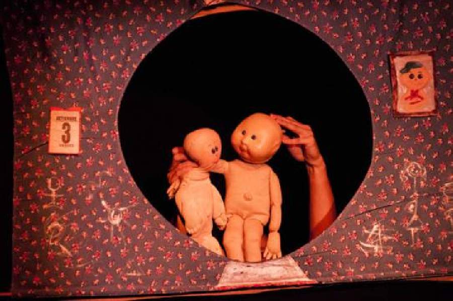 El retablo gira y como un cubo mágico se va transformando en la panza de mamá, el cuarto del bebe, los sueños .