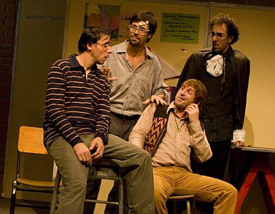 Tres tipos mediocres que apenas se soportan. Un coordinador alcohólico que secretamente los desprecia.