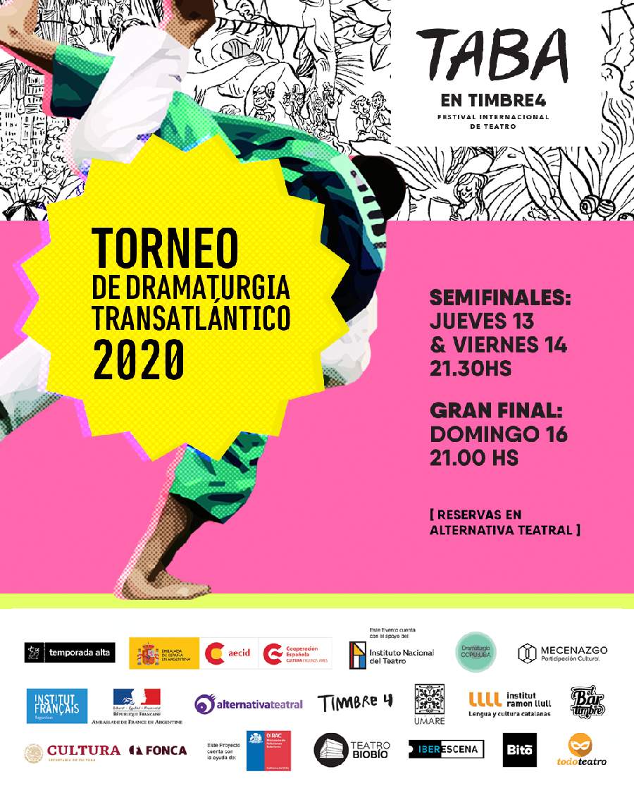 Los días 13, 14 y 16 de febrero, se realizará el clásico torneo de dramaturgia transatlántico en el que competirán textos de Cataluña y Argentina. En esta oportunidad, Cataluña estará representada por las dramaturgas Concha Milla y Laura Gost, ambas viajarán especialmente a Buenos Aires para participar del torneo con sus textos que son los ganadores del Torneo de Dramaturgia de Temporada Alta Girona 2019. Mientras que, Argentina estará representada por Valeria Di Toto y Benjamín Gáfaro. La entrada es libre y gratuita, con reserva previa.
